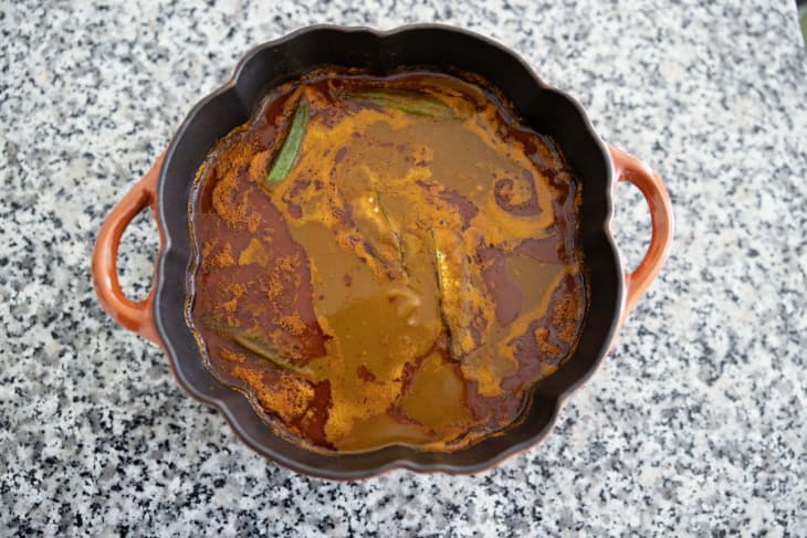 5 out of 5. Okra Soup with choice of Fufu. Put some oil in a pot and add the peppers onions tomatoes and crumbled bouillon cubes.